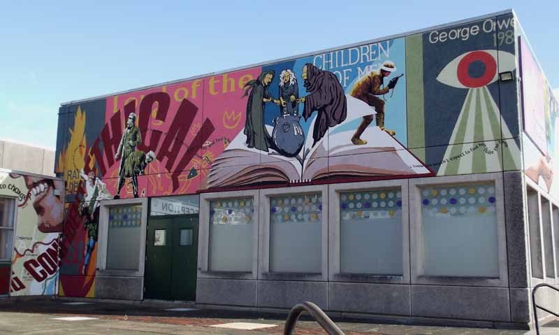 To see a virtual 3D model made by Jazz Cousins of the entire mural click on any image. If you go to the ? button in the bottom right of the model image you'll find out how you can easily control the model and zoom into to see any part of the mural in detail.