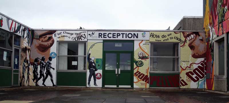 The school is a 1960's budget brutalist architecture style. A lot of people find it oppressive. My job was to decorate and humanise.