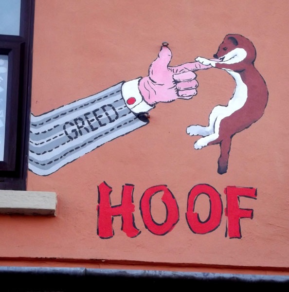 Following the defeat of the Govt's attempt to sell the Forestry Estate via the Public Bodies Bill in 2010, the govt commissioned an Independent Panel to review what should be done with the the Forestry Estate. The panel said the Forests are excellent value for money, great for social well being, should be protected from sale by a new Bill, and expanded. The Govt did not find time in the next 4 years to implement this recommendation. So HOOF are organising some events and a Forest of Dean MP candidates debate in time for the 2015 election in May. In support and to help advertise these events I painted 2 murals -