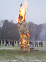 Local fire sculptor Phil Bews who built a Big Ben for a HOOF rally on 3 Jan 2011 and asked me to paint the clock face on it.
