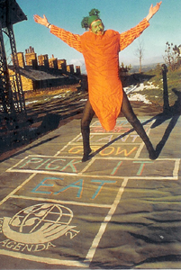 Bradford Council's Local Agenda 21 Unit asked me to design a poster to promote the aims and objectives of Bradford Local Agenda 21. To this end for eight months in 1997 I photographed 30 groups of Bradford citizens hopscotching on my mobile hopscotch mat.
