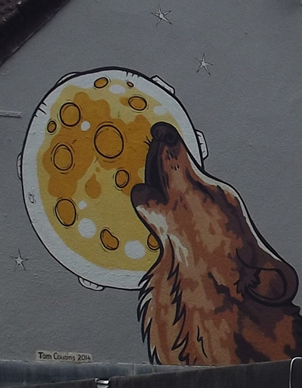 This mural was first painted at K9 dog rescue for Hands Off Our Forest in 2014 on white, then when the house was repainted magnolia after HOOF had won that campaign the owners wanted it de-politicised in 2016. In 2020 in preparation for a house sale the house was repainted grey with the business logo K9 removed. I'm looking forward to meeting the new owners and curious to see if they would like any changing.