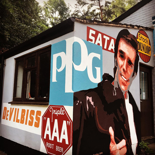 Fcbc car body repair garage, 2019. Tim wanted to give his garage that happy go lucky 1950's look,