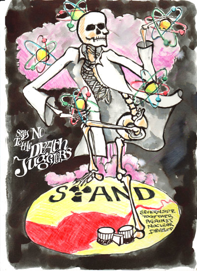 Originally I had been thinking of a large mural such as a STAND death juggler. Maybe when the small (ha ha) modular reactors are half built and the government feels its safe to announce its intentions because its almost too late to complain. Lets face it no one wants to live in a new nuclear industry cluster so I imagine then people will be queueing up for me to paint their gables, cars, coats, whatever.