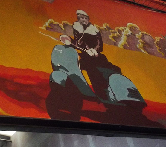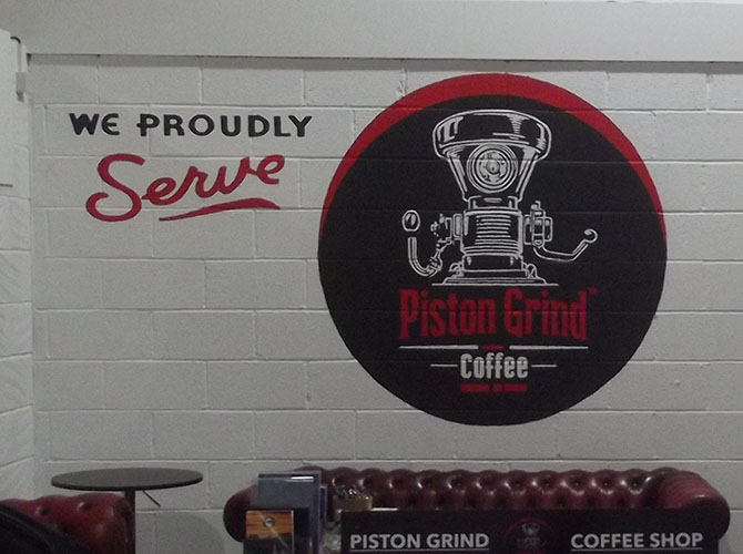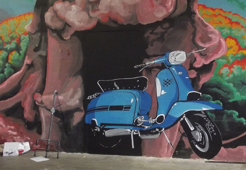 The unit was taken over from Galavant Campers for whom I painted up the front of the unit. Galavant Campers have moved down the road to Staunton. Vintage Metal asked me scooterise the front mural.