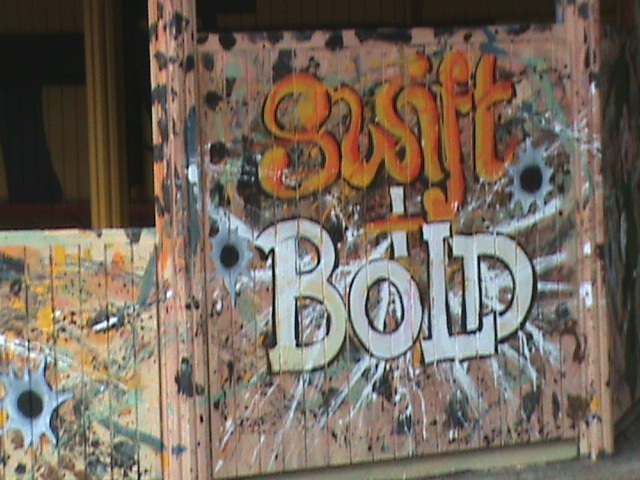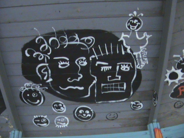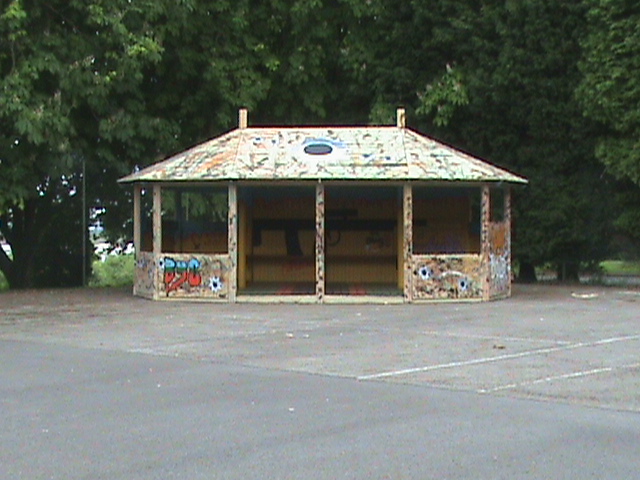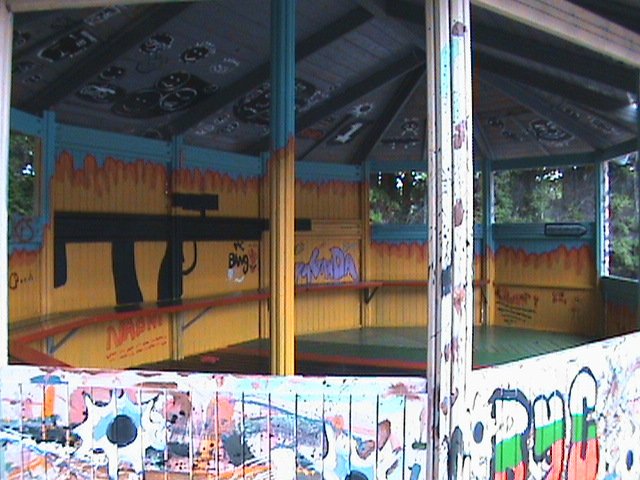 Beachley is currently home to the 1st Rifles, and the Youth club wanted to paint up a pavillion in their skate board park with a mixture of regimental symbols, graffitti, action painting, and guns. Lethal munitions would normally be seen as inappropriate imagery in youth clubs, but in this context are seen as tools of trade.