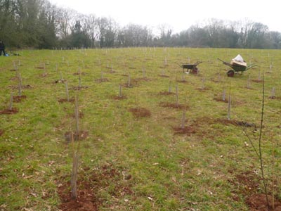 In 2016 I organised the planting of one thousand trees at the Angus Buchanan Recreation Ground of Coleford. It was planted with local school and scout groups and a few public planting days. The tree types and densities are suitable for coppicing, mainly hazel and chestnut, with some stands of oak to be felled some time from 2065. The idea is that parts of the wood will be coppiced annually providing wood for community/education charcoal burns, green wood workshops, or for use at the rec. It's planted next to a small ancient woodland hopefully making it a more viable habitat area for a greater range of wildlife. The aim is that it provides just enough wood to enable the workshops, but not more so that it is self managing and incurrs no maintenance issues for the Rec. Funded through the Gloucestershire Wildlife Trust.