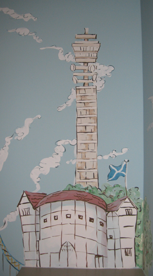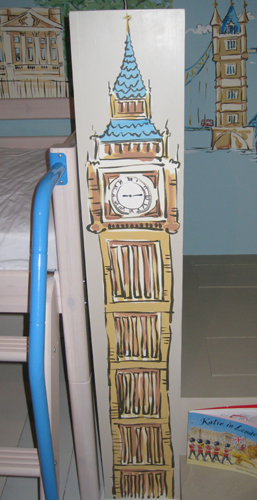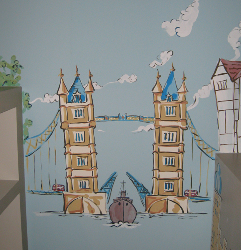 I was asked to paint a child's bedroom with London landmark buildings in the style of a James Mayhew book, Katie in London.