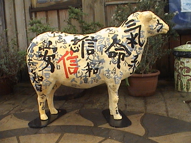 For this sheep the kids practiced copying some Chinese words paying special attention to variable brush pressure and then wrote a word or two up on the sheep.