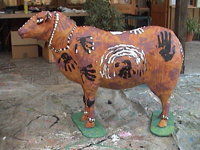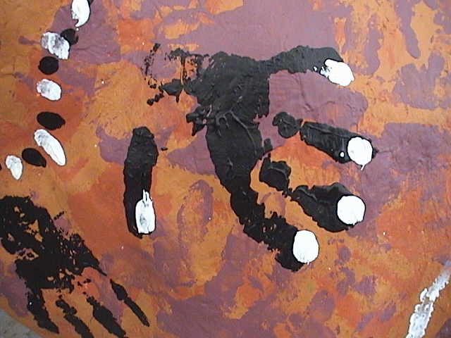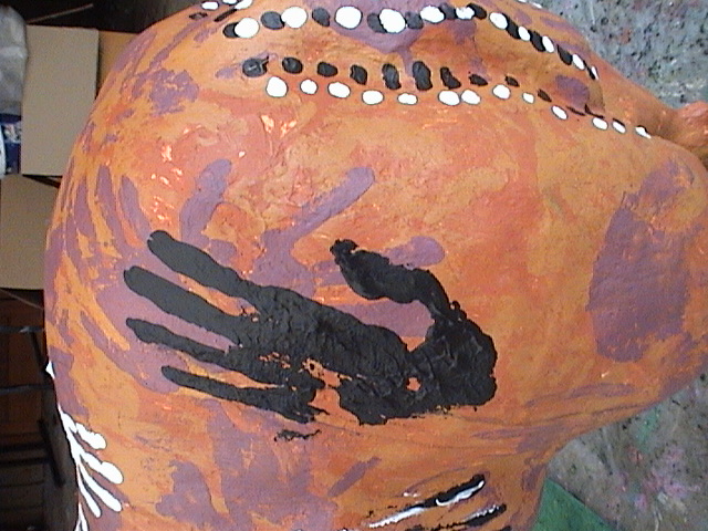 Kids were only allowed to paint this sheep using their hands, with ochres, white and black.