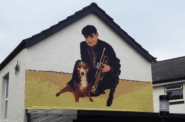 Vaughan wanted himself, dog and trumpet painted above his garden drinking shed. Some of his drinking regulars accused him of narcissism. Which made me realise why I liked him, narcissus meets artist. But actually they were fairly wrong, Vaughan wanted his face smudged as much as I would allow, was more interested in Harry the Dog, and by far the most interested in his trumpet being as perfect as possible.